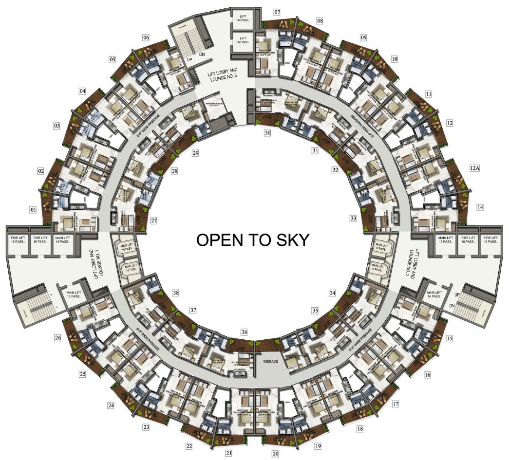 Lot of projects do lip service to solar buildings. Now see Solar Building Design actually come alive at NorthEye. Our architects and engineers have taken utmost care to take into consideration the solar thermodynamic principles and the solar path. There are seasonal variations in the sun's path due to the inclination of the Earth's axis of rotation in relation to its orbit. The key is to take advantage of the local climate to come up with solar building design, and distribute solar energy in the form of heat in the winter and reject solar heat in the summer. So, no matter what season of the year it is, you’ll get regulated sunlight throughout the year. At NorthEye, we call this tall architecture.