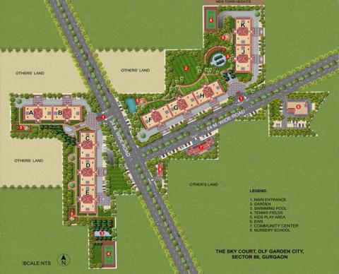 DLF Sky Court offers 3BHK air conditioned apartments. Each apartment covers an area of 1,850 sq. ft. These classy and premium residences are going to set another landmark as most of DLF's projects are known to do, particularly in Gurgaon. Given the developer's reputation for classy, comfortable and luxurious creations, it goes unsaid that most necessities will be made available here, be it exquisite interiors, strong exteriors, or a community of ample lifestyle choices within a residential complex. These may include air conditioned entrance halls on the ground floor, pre-heated water system through solar water heaters through kitchen etc.