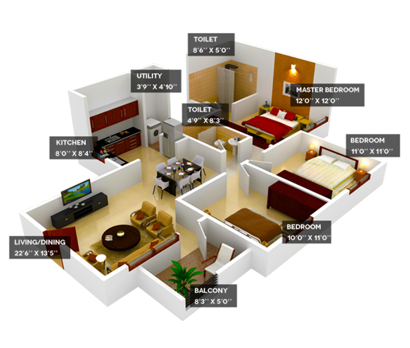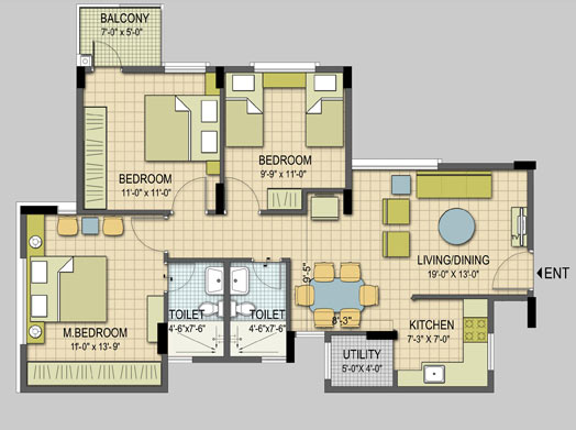| ELECTRICAL | ISI quality cables using copper wiring through PVC conduits concealed in walls and ceilings. One light point, fan point, power point in each room, call bell point in dining area, one AC point in master bed room and exhaust point provision in kitchen & toilet. One geyser point in 2 BHK toilet and one geyser point in each of the two toilets in 3 BHK. Each 2 BHK apartment to have 3000 watts of power supply. 5000 watts for 3 BHK apartment. |