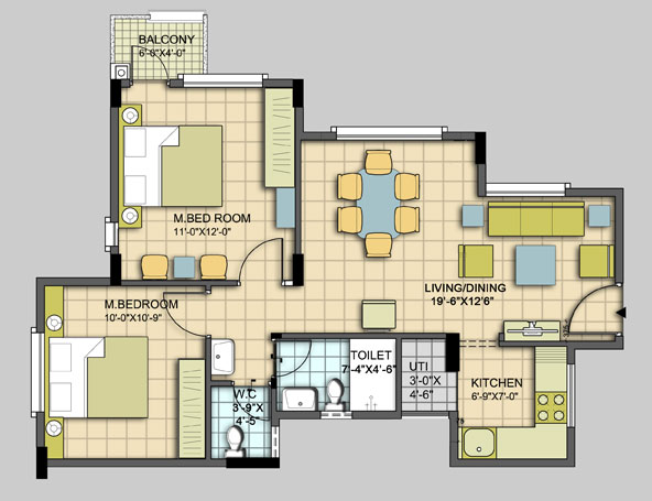 | (a) Flooring | Living / dining / Bedrooms / passages leading to bedrooms - Vitrified tiles Utility and Balcony - Ceramic tiles Toilets - Anti-skid Ceramic tiles |